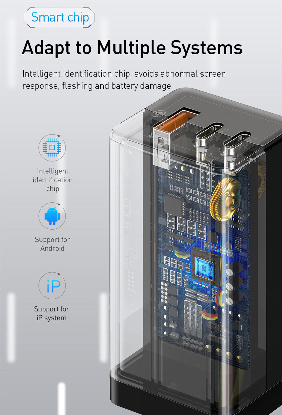 · Two ports support 63W(Max) when charging at the same time